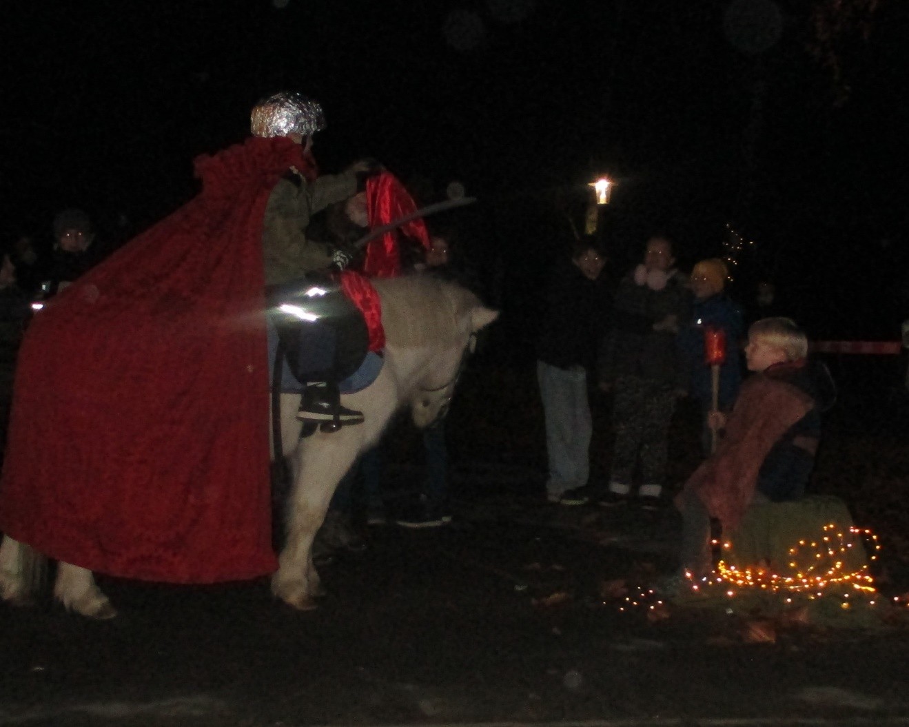 Ein strahlender Höhepunkt war dann natürlich der Laternenumzug, angeführt von St. Martin auf seinem treuen Ross. Die vielen gebastelten Laternen der Kinder erleuchteten den Umzug und machten den Abend wieder einmal zu einem schönen Erlebnis.