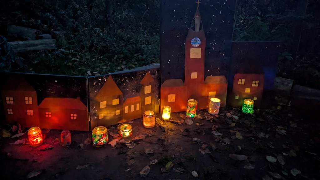 Nachdem es mittlerweile dunkel wurde und alle gestärkt waren, machten sich alle mit den Laternen auf den Weg in den Wald.