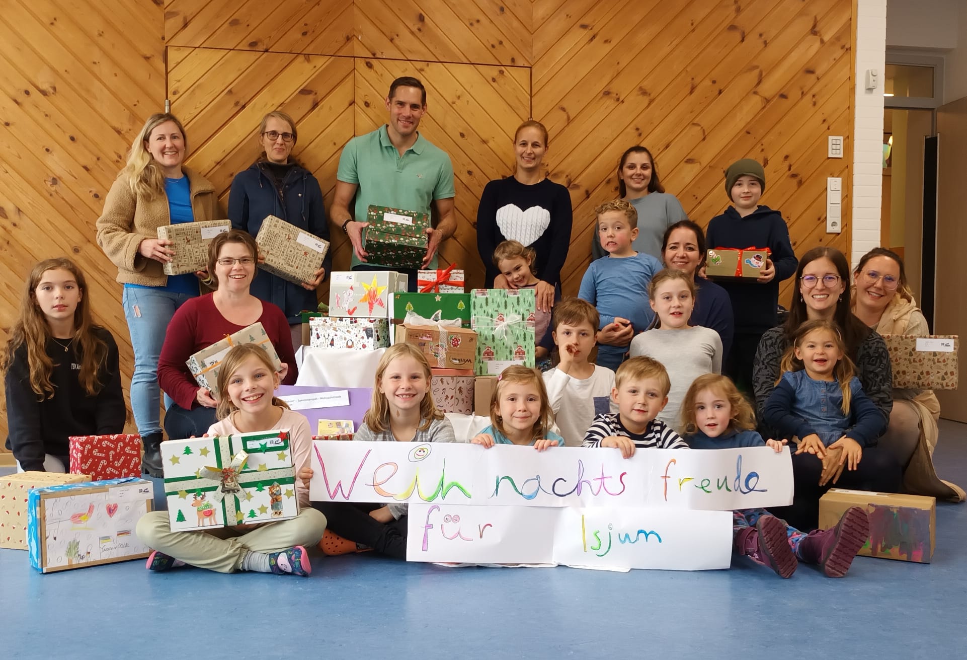 Unter dem Motto „Weihnachtsfreude für Kinder in Isjum“ beteiligte sich das AWO Familienzentrum Kirschenstraße in Viernheim an einem Herzensprojekt des Vereins „Schaukelpferd e.V.“ zugunsten vom Krieg traumatisierter Kinder in der ukrainischen Stadt Isjum. Herzu packte jede Familie ein oder mehrere Schuhkartons mit Spielsachen, Süßigkeiten, Schreibwaren, Kuscheltieren oder Hygieneartikeln im Wert von 20 Euro. Den Versand übernimmt der Verein. Die Kinder wissen bereits, dass sie ein Geschenk aus Deutschland erhalten werden, und freuen sich schon sehr. Alle Geschenke wurden personalisiert, d.h. für jedes Geschenk wird ein Packschein erstellt, anhand dessen die Familien den Namen und das Alter des beschenkten Kindes erfahren.